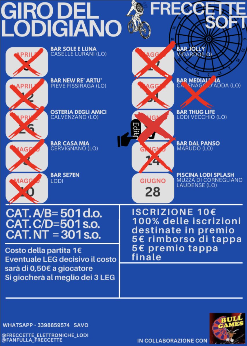1ยฐ Trofeo cittร di Lodi e provincia – Soft Darts